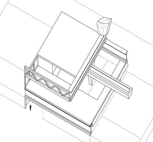 El orden de apilamientos estructurales genera un helicoide que parte de un apoyo estable, la viga madre, para ir desarrollándose en sentido ascendente con estructuras cada vez más ligeras hasta cerrar la secuencia con un punto que culmina el sistema de equilibrio. Además, las enormes piezas de hormigón se apoyan unas sobre otras en un equilibrio que mantiene a raya un gran bloque de granito de 20 toneladas a modo de contrapeso.