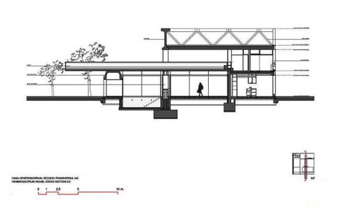 Hablar de los espacios de esta construcción es poner la imaginación al servicio del espacio y la luz, los ventanales rodean todos los ambientes e invitan a participar del suave paisaje de la sierra o a conseguir la intimidad mediante cortinas de lamas regulables.