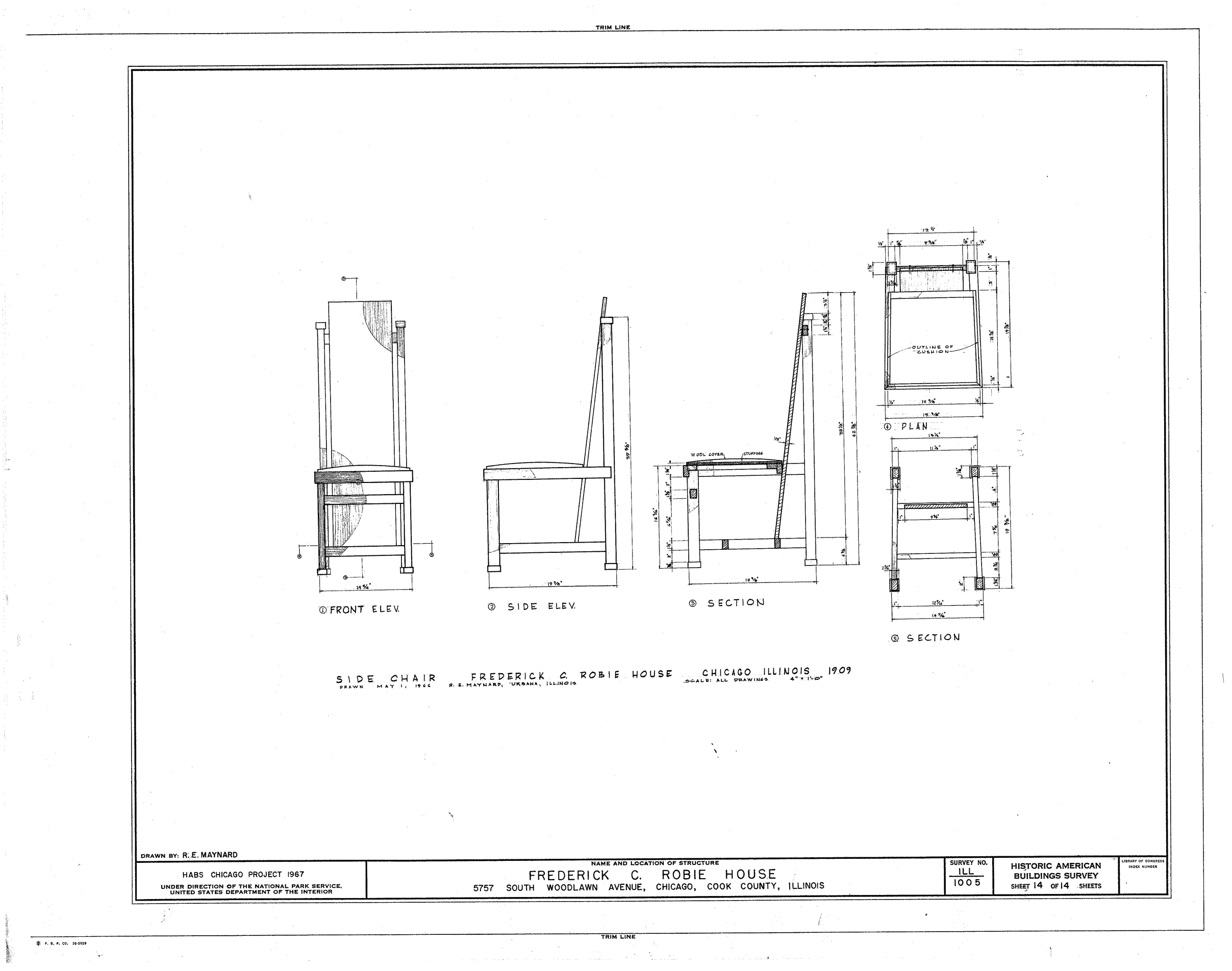 Deseaba una casa protegida contra incendios sin espacios cerrados en forma de “bloques” y sin los elementos decorativos habituales, como cortinas o alfombras compradas, etc. Como ingeniero, Frederick C. Robie, quería además una casa que funcionara como una buena máquina. La situación en un ángulo del terreno explica en gran parte su forma, muy similar a la de otras “Prairie Houses”.