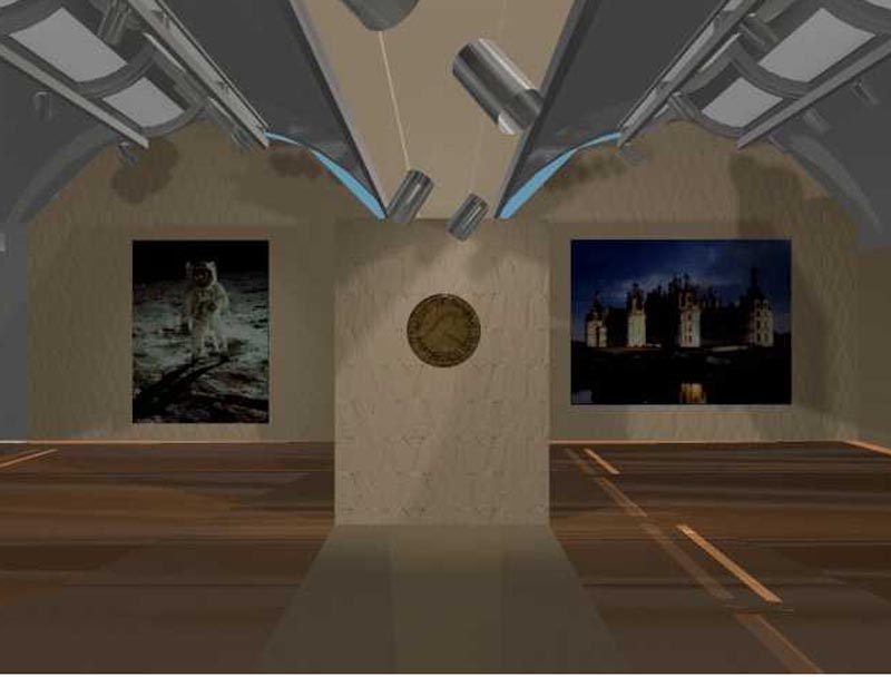 Los estrechos tragaluces que hay a lo largo de las bóvedas tienen en su interior reflectores de aluminio, a la vez que proveen a las galerías de una difusa luz natural