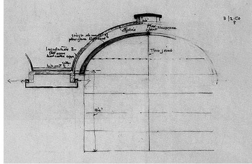 Ideológicamente, se puede ver y entender mejor que la forma global de un silo de grano, que consta de una serie de formas abovedadas separadas por una superficie plana, que ha sido conceptualmente desprovisto de su condición vertical y se ha dispuesto horizontalmente en el paisaje pueda convertirse en la estructura de la configuración de la cubierta-techo.