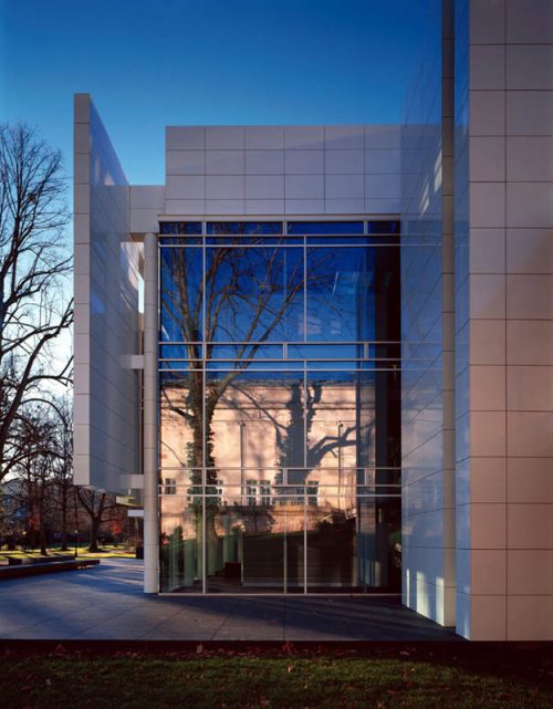 Con el sello distintivo del arquitecto norteamericano, este museo logra la armonía tanto con el parque que lo rodea, como también con el museo que se ubica al lado suyo.