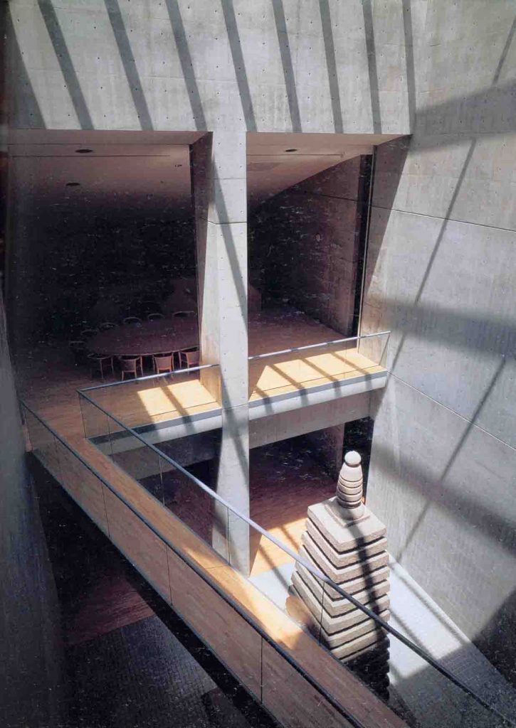 Ando combina el uso del hormigón con contrastes de luz y oscuridad, interior y exterior, duro y suave, naturaleza y ciudad, oriente y occidente, creando ricos ambientes llenos de paz.