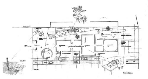 Si se sigue recto se llega a las cinco habitaciones con claraboyas restauradas. Dispuestas una detrás de otra, estos espacios expositivos tienen paredes blancas que les dan un carácter neutro. «…El viejo edificio se encuentra en el corazón del diseño…», dice el arquitecto e historiador, Werner Durth. Fue él quien logró persuadir a Günter Behnisch de la necesidad de preservar las huellas de la historia.