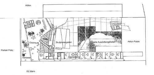 Un desafiante Günter Behnisch declaró: «… Nunca voy a construir un edificio de piedra en ningún lugar, y mucho menos aquí, donde cada piedra tiene una triste historia que contar …”. El arquitecto finalmente triunfó en la batalla sobre su edificio de cristal en la Pariser Platz, después de una dura batalla con los órganos políticos, incluso a lo largo de los trabajos de construcción se dejó caer el plan original de imprimir sobre el vidrio imágenes de la fachada original.