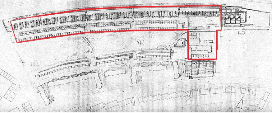 El deseo de controlar el sonido y las vibraciones de los trenes era una consideración importante en la organización de las tres filas paralelas de viviendas. Una hilera de apartamentos con terraza están alineados a lo largo de las vías, es el mayor de los edificios escalonados, 8 plantas, diseñado para bloquear la llegada del ruido de los trenes a la parte interior del complejo. Un bloque bajo, 4 plantas, corre a lo largo al otro lado del paseo público peatonal que comparten ambos edificios diseñados para abrirse hacia el sur. La tercera hilera de construcción, también con 4 plantas y paralela a la otra de igual altura, corre a lo largo del borde sur, es paralela a otra vía pública, entre esta fila y los primeros edificios construidos de Ainsworth Estate y define un parque público entre la segunda y tercer fila de viviendas.