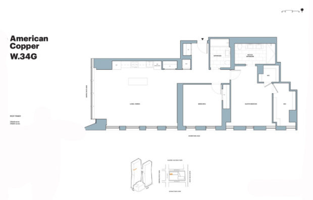Las torres con 41 y 48 pisos tienen una doblez de 4º cada una. Cada torre tiene más de 300 diseños residenciales con vistas al Empire State Building, a Manhattan Skyline y a su vecino East River.