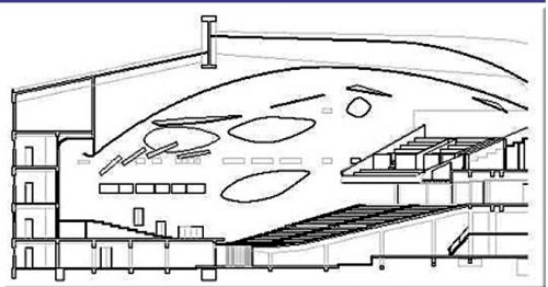 El conjunto de colores y materiales conformaría, finalmente, un todo armónico con los 22 platillos acústicos y una iluminación que no producía sombras a la audiencia.