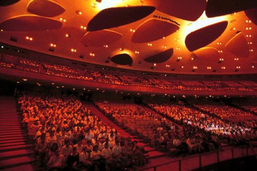 «El peor diseño para recintos que requieren de una acústica natural», en palabras de Leo Beranek. Ante la negativa de realizar cualquier cambio a los planos ya definitivos, se exploró como solución alternativa la propuesta de Robert B. Newman, quien recomendaba realizar paneles reflejantes de sonido. Hacía falta un área igual al 70% del techo para poder reflejar convenientemente el sonido hacia la audiencia.