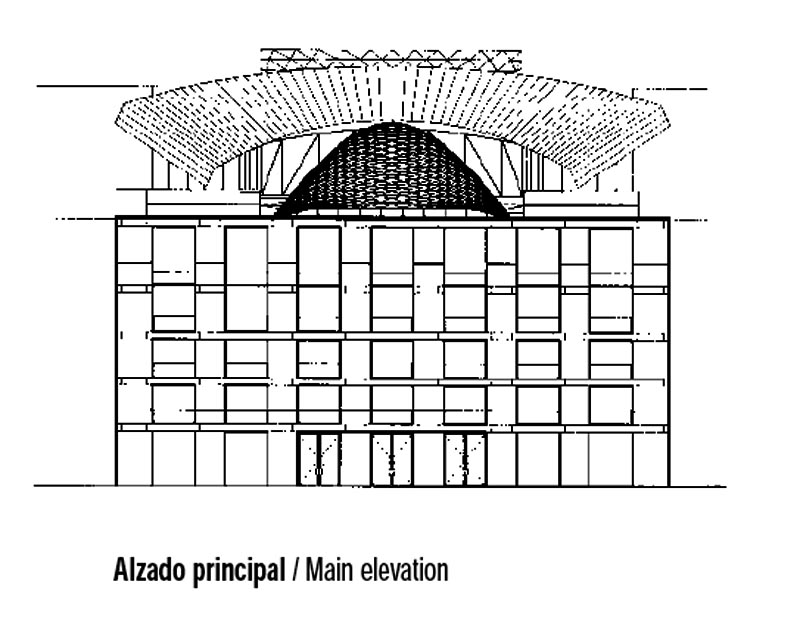 Las fachadas tienen escalas independientes entre sí, de modo que las proporciones de ambas se ajustan al área urbana inmediata en la que se integran.