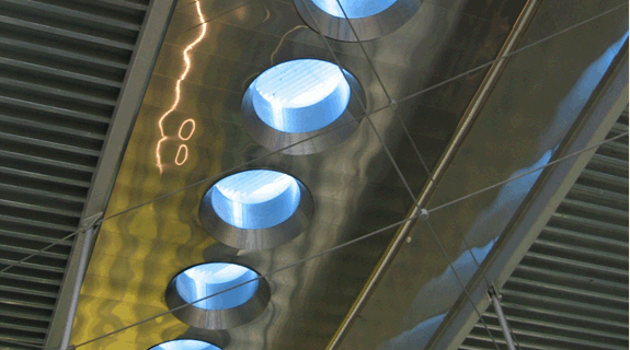 Centrándose en la luz y el deslumbramiento, en el diseño del edificio se agregaron, en su fachada norte, toldos vela realizados por fabricantes de velas para embarcaciones en la ciudad de Maine, que pese a su aporte de penumbra permiten vistas optimizadas del exterior. Estas membranas verticales fueron fabricadas con teflón.