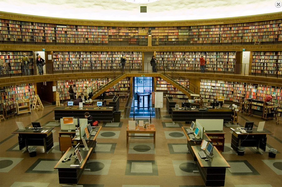 La Biblioteca Pública de Estocolmo fue la primera biblioteca de Suecia en aplicar el principio de estanterías abiertas donde los visitantes podían acceder a los libros sin necesidad de solicitar asistencia del personal bibliotecario, concepto que el arquitecto observó en las bibliotecas de Estados Unidos.