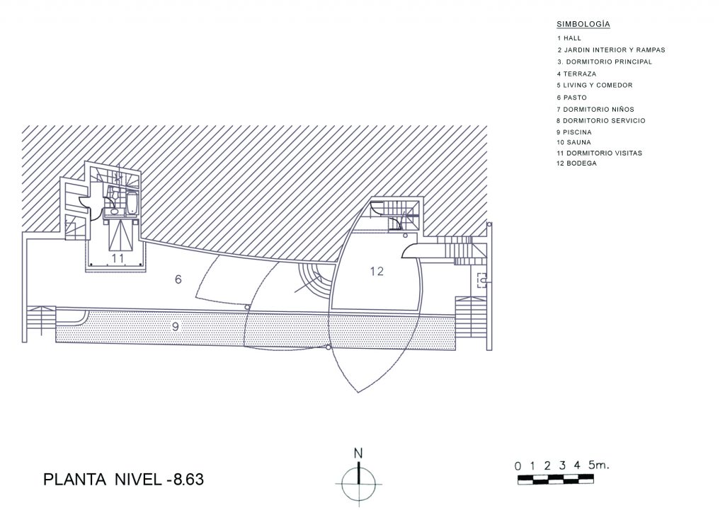 Debido a sus rampas la vivienda ofrece una gran variedad de recorridos y visiones. Ellas además colaboran en la contención de los empujes del terreno.