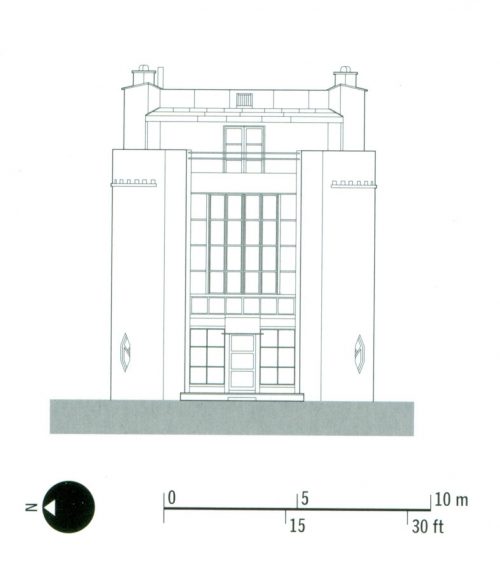 Y fue justamente en su propia casa donde realizó la mayor aproximación a las formas plásticas preferidas por Mendelsohn, no en su estructura perimetral de forma cilíndrica pura y diáfana, pero sí en el dormitorio con sus paredes curvas perforadas por huecos hexagonales, con sus camas colocadas sobre pedestales y su aproximación al ambiente de una caverna.