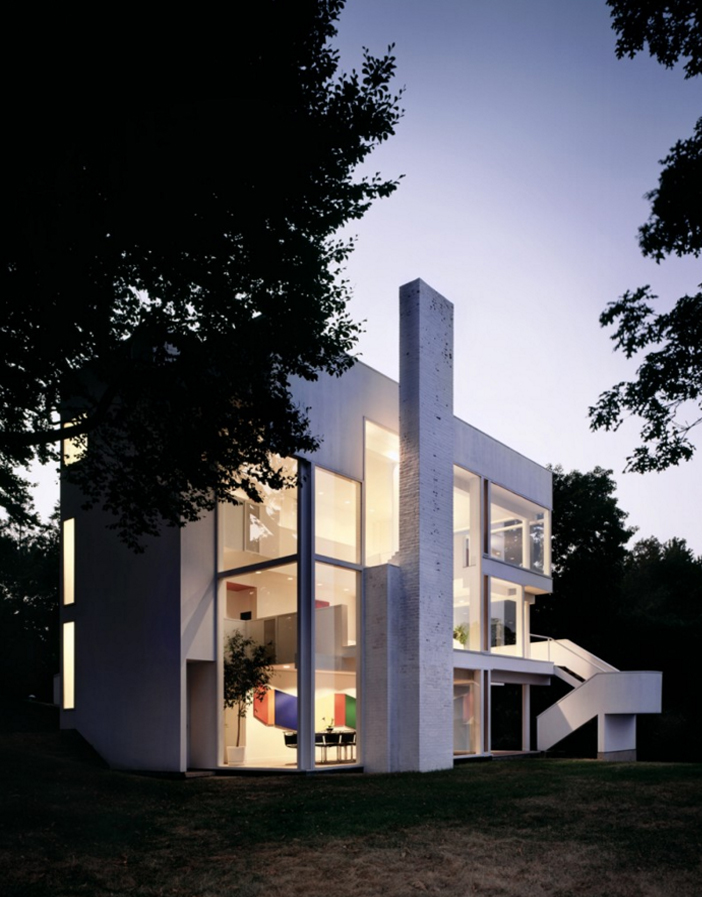 La forma compacta y prismática de la casa expresa una cierta actitud hacia el lugar, además de ser un refugio es también un objeto, reflejando y refractando la escena natural de los alrededores. La casa tiene sus raíces en la fuerte tradición de las casas unifamiliares de Nueva Inglaterra, unidades autosuficientes.