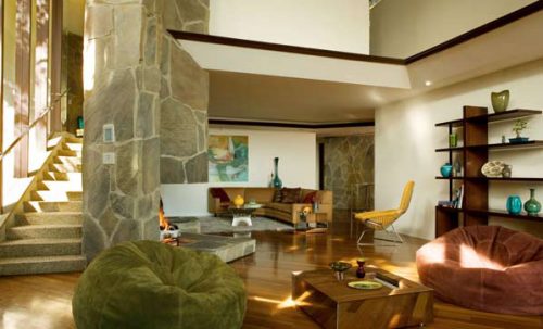 Los interiores de la casa fueron diseñados con la visión característica de John Lautner sobre la naturaleza de la yuxtaposición con fuertes líneas arquitectónicas.