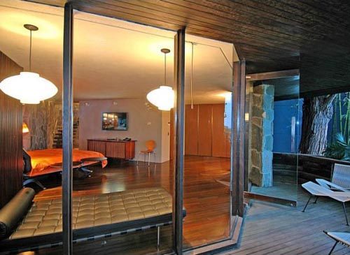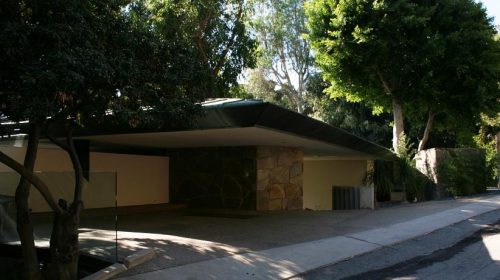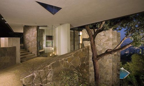 Esta magnífica casa fue diseñada y construida por John Lautner en 1961. En ella la transición del interior al exterior se traslada del pavimento a los muros y a los espacios entre los muros pétreos y el acristalamiento interior.