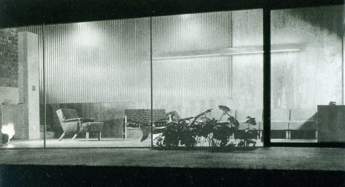 Los materiales industriales tales como madera contrachapada y vidrio con alambre ondulado fueron utilizados en la construcción de tabiques y ventanas, como el que separa la zona de dormitorios de la sala de estar, realizado con vidrio translúcido corrugado.
