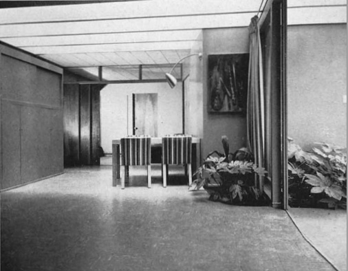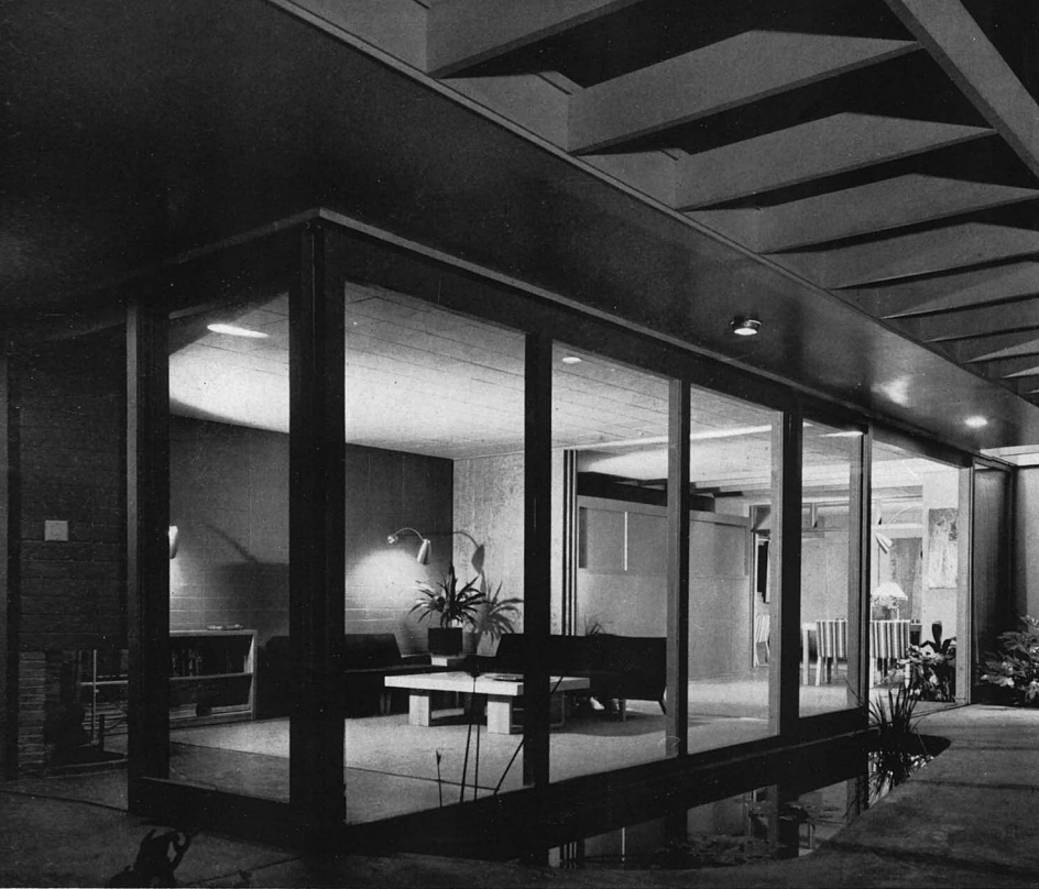 La casa fue construida por el arquitecto Thornton Abell para una familia pequeña, los padres y una hija adolescente. Se asume que el cliente requiere un lugar donde estudiar y trabajar por la tarde y un cuarto oscuro para su afición a la fotografía. La madre, cuyos intereses son la cocina, la costura y la jardinería, comparte con su hija el interés por la música.