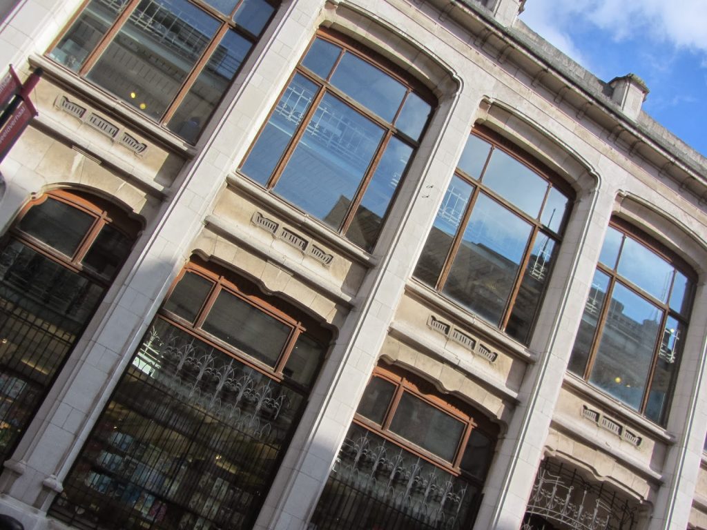En este contexto se crean los almacenes Waucquez. El espacio que servía de almacén para la empresa se sirve de la nueva corriente estética para crear un espacio esplendido para el comercio de sus productos. Este edificio pues, sigue la estela de la arquitectura de los grandes almacenes del siglo XIX como Printemps, las Galerías Lafayette o La Samaritaine en París, pero en versión más reducida.