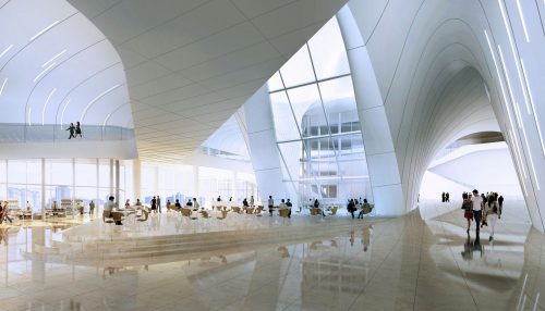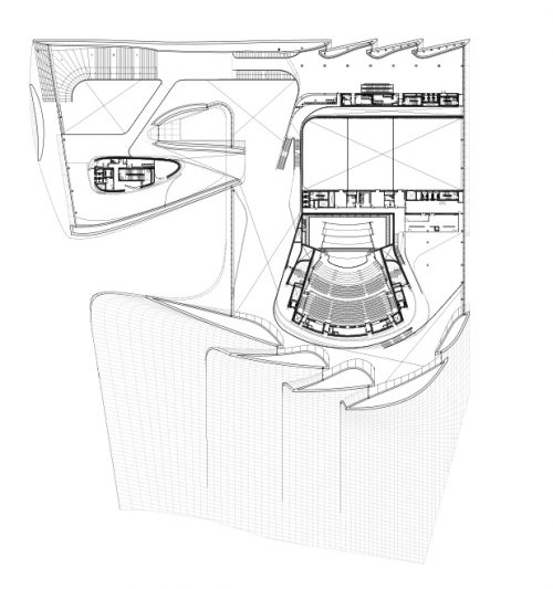 Según su contratista principal, DIA Holding, las formas de los 57.519 m2 del centro cultural manifiestan la ligereza de un ondulante pañuelo en caída libre.
