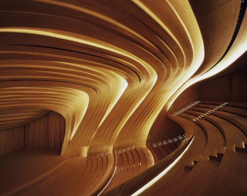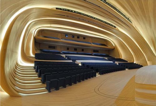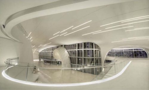 El centro diseñado para convertirse en el edificio principal de los programas culturales de la nación, rompe con la arquitectura soviética rígida y, a menudo, monumental que es tan prevalente en Bakú, aspirando a expresar la sensibilidad de la cultura azerí y el optimismo de una nación que mira al futuro.
