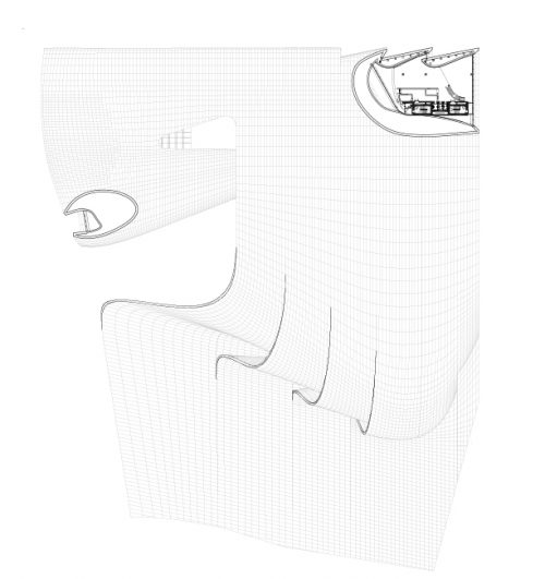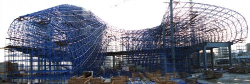 El sistema de marco espacial permite la construcción de una estructura de forma libre y ahorra tiempo durante todo el proceso de construcción, mientras que la subestructura se ha desarrollado para incorporar una relación flexible entre la rejilla rígida de la estructura espacial y las costuras de revestimiento exterior de forma libre. Estas costuras se obtuvieron a partir de un proceso de racionalización de la geometría compleja, el uso, y la estética del proyecto. La fibra de vidrio reforzada con hormigón y la fibra de vidrio reforzada con poliéster fueron elegidas como los materiales de revestimiento ideales, ya que permiten la poderosa plasticidad del diseño del edificio al tiempo que responden a exigencias funcionales muy diferentes relacionadas con una gran variedad de situaciones: plaza, zonas de transición y envoltura