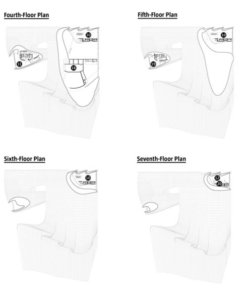 La planta baja cuenta con varios espacios de cabildeo destinados a crear lugares públicos que unan los diferentes aspectos del programa del centro. A partir de estas salas de bienvenida, en el interior del edificio continúa el tema de la fusión, con superficies continuas.