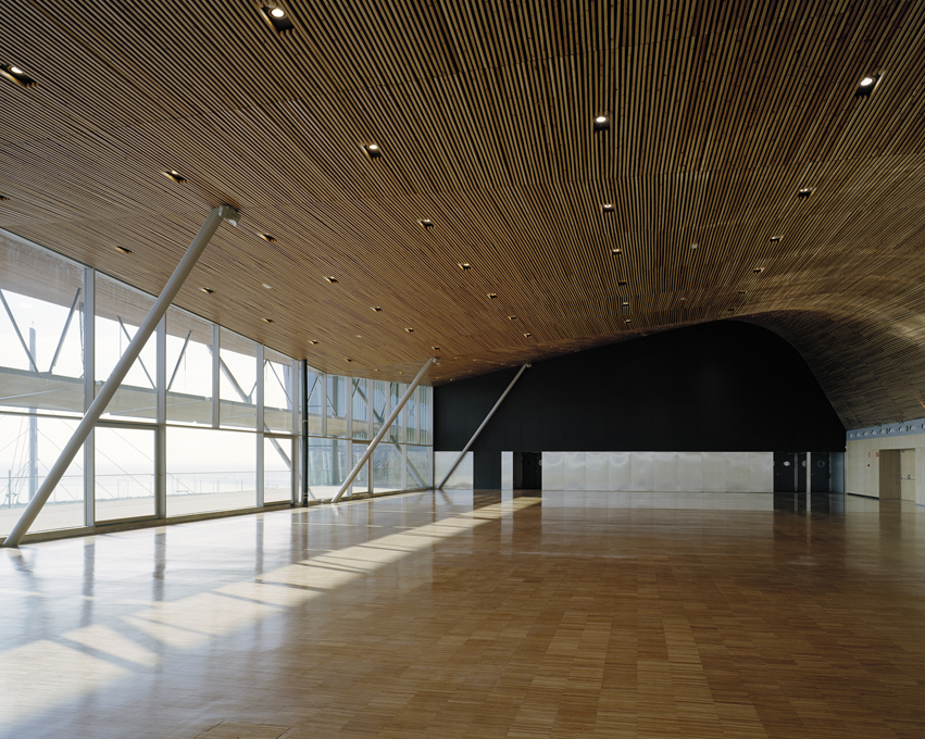 El Centro de Congresos en sí mismo es una plaza cubierta: al sur, la fachada de metal forma un frente orgánico, ondulado y continuo, un suave zócalo. El interior de la casa de un gran salón, un área de exposición de usos múltiples para la muestra que puede contener hasta 15.000 personas.
