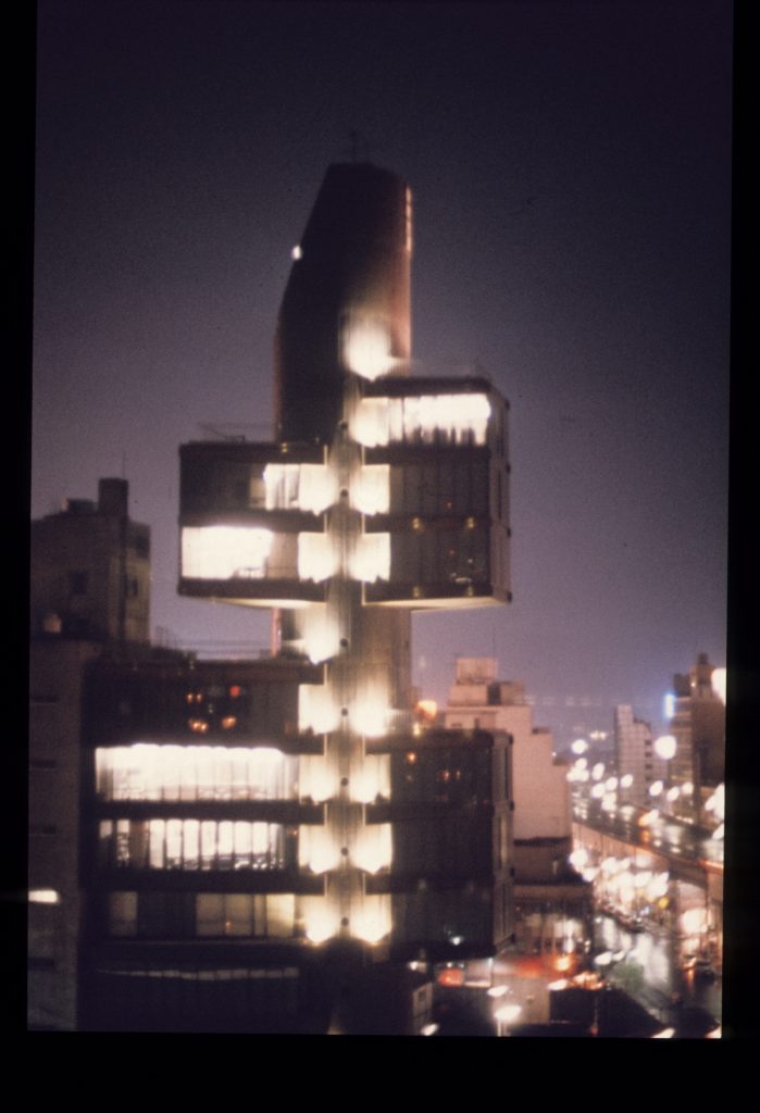 Tange muestra en este proyecto su visión metabolista dotando al edificio de un núcleo de instalaciones al que se pueden enchufar más o menos cápsulas según la necesidad de los usuarios del edificio. Muestra de ello son las terrazas o espacios vacíos que hay sobre o entre alguno de los módulos. Mientras el espacio no se necesita éste se deja como una terraza. En el momento en que la ampliación de las oficinas sea necesario, una nueva cápsula ocuparía este espacio.