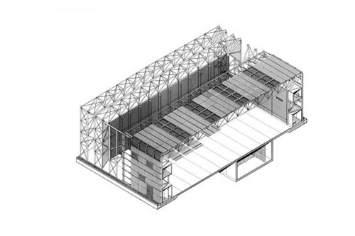 El edificio está fundado en una gran platea, mientras que la estructura se resolvió con un sistema similar al de las grandes naves industriales, formado por una estructura independiente de acero.