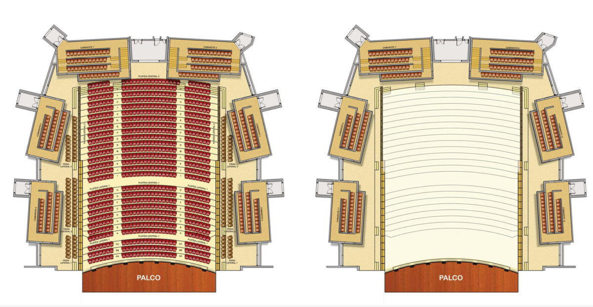 El Teatro de Cámara tiene dos configuraciones escénicas diferentes. Esto es posible gracias a la plataforma circular sobre la que se instala el escenario y las primeras filas de público. Puede servir como sala de música y teatro clásico frontal o como una especie de anfiteatro
