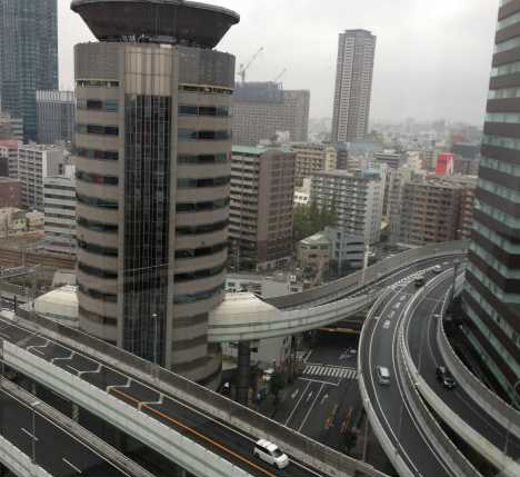 El Gate Tower Buiding,(ゲートタワービル)con sus 16 plantas dedicadas a oficinas, un ático para maquinaria y dos sótanos subterráneos, no atrae la atención por su diseño o altura, sino porque una autopista atraviesa el edificio. En Osaka, donde fue construido se le ha puesto el apodo de “colmena”, en referencia a su apariencia de “lugar lleno de vida o bullicioso”.