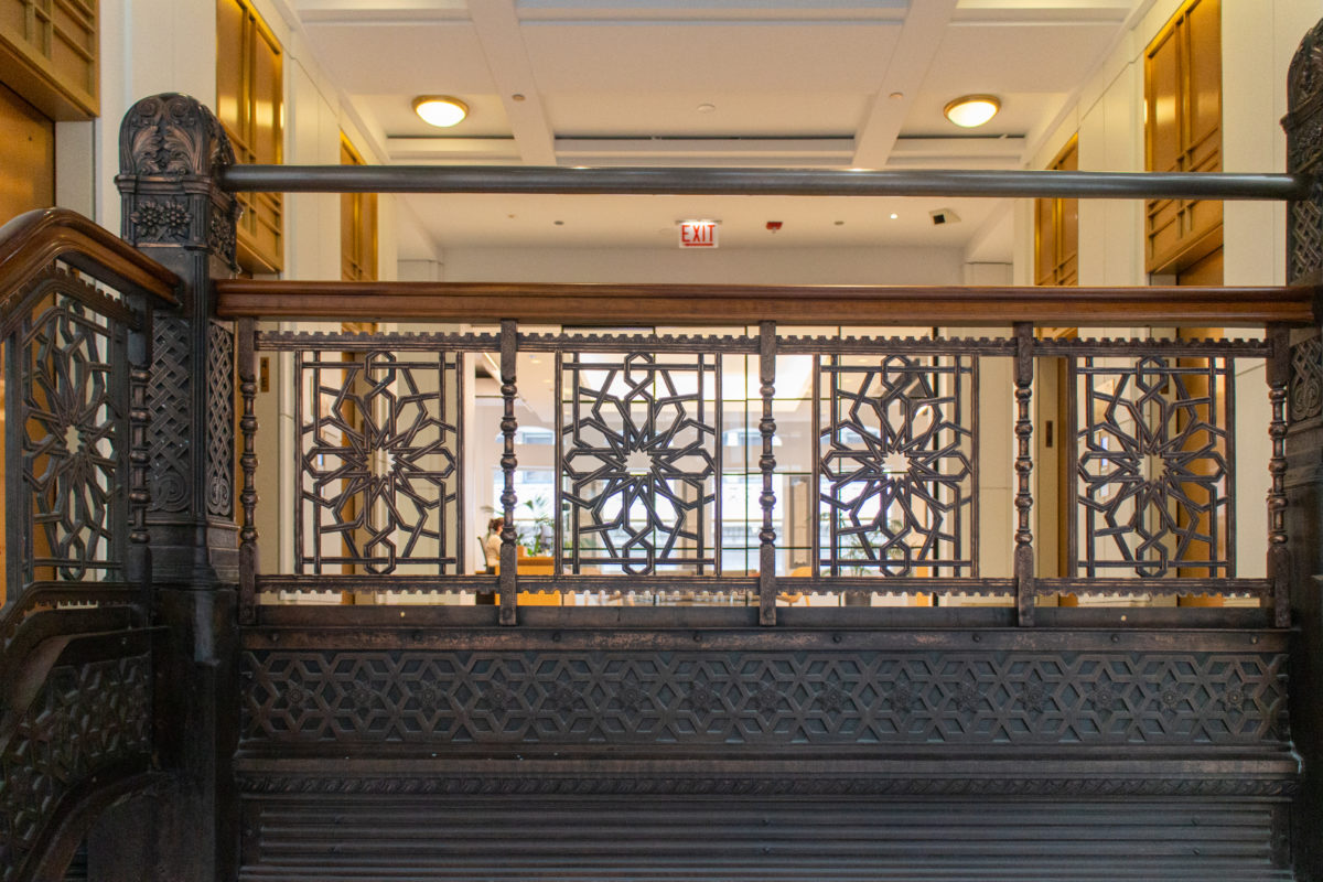 - Patio interior: uno de los detalles arquitectónicos de gran valor en el Rookery es su patio interior que maximiza la cantidad de luz y aire en el plano interior cuadrado del edificio. Este pozo central proporcionaba luz a las oficinas y el patio de abajo aseguraba que los niveles interiores inferiores estuvieran bien iluminados.