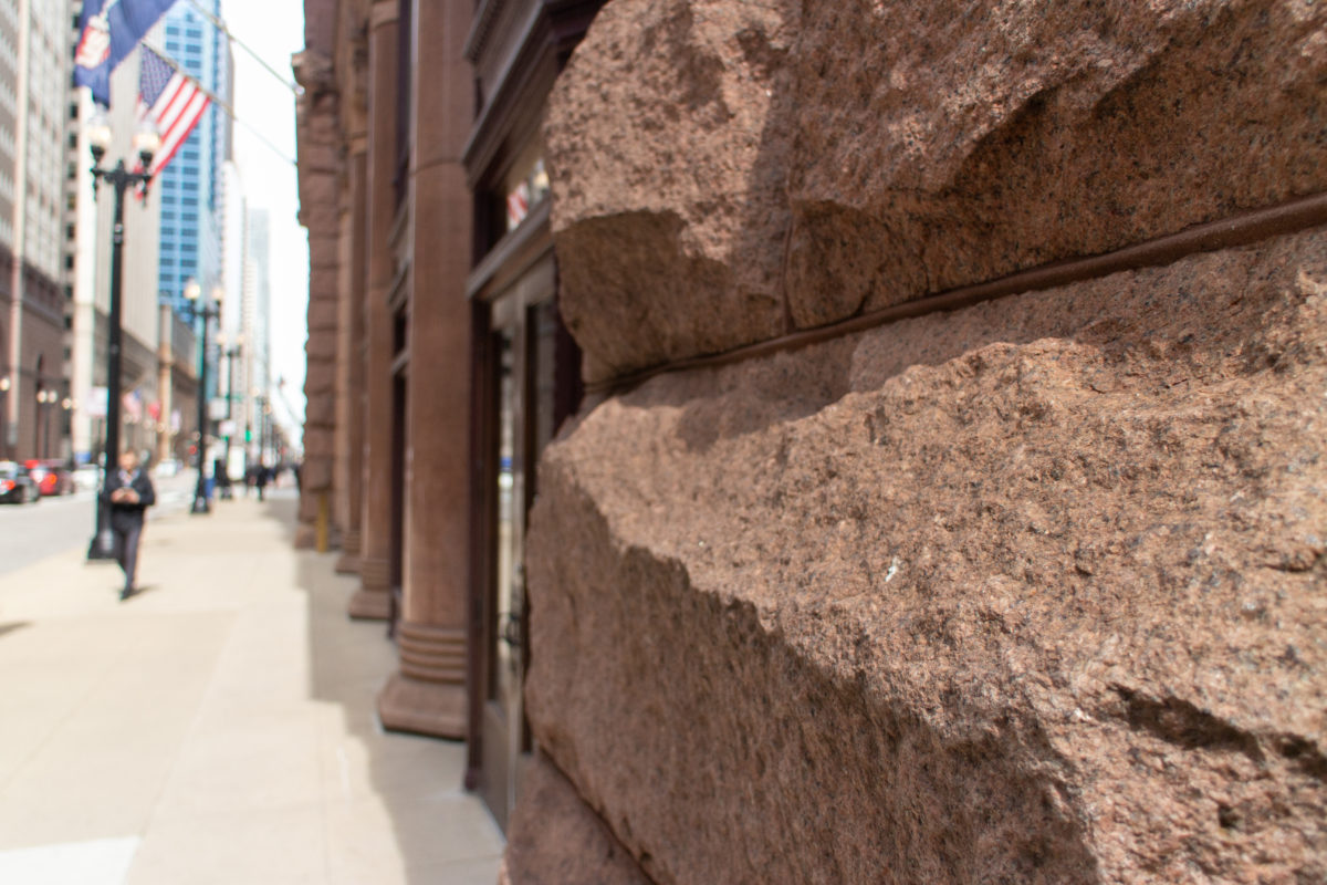 Las bandas horizontales a lo largo de las fachadas de las calles Adams y LaSalle atraen la atención de lado a lado para minimizar la altura percibida del edificio.