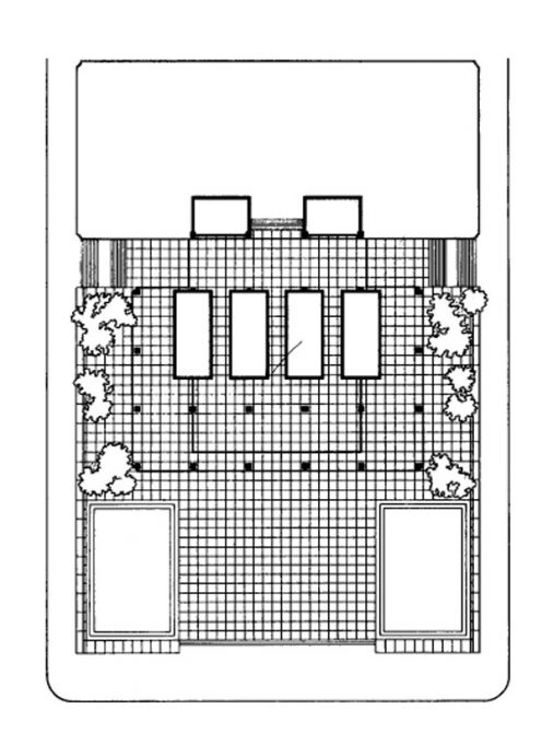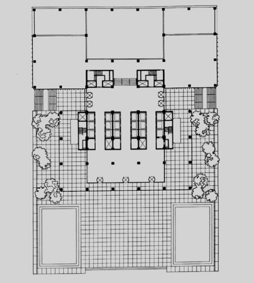 La planta del Seagram es, al igual que en los Lake Shore Drive, un rectángulo de 5×3 módulos estructurales cuadrados. Pero en la elevación del edificio logra su perfección expresiva, simulando una columna con sus tres partes constitutivas clásicas.