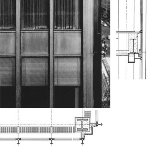 El refinamiento que Mies demostró en el Seagram se extiende a la elección de los materiales: perfilería y paños metálicos en bronce claro y vidrio de tonos rosados, en el muro-cortina de la fachada, contribuyen a darle a esta obra una suerte de charme neoyorquino del cual carecen los ejemplos anteriores, más austeros en su rigurosidad tecnológica.