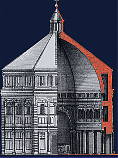 La cúpula estaba cubierta con una linterna y restaurando el suelo en el siglo XIII, se procedió al «desmantelamiento» de este primer monumento astronómico extraordinario. Al igual que la Catedral, también tiene un techo diseñado para centrar un haz de luz en el equinoccio y que parece estar todavía en funcionamiento. Parece que cada una de las principales iglesias, palacios o laboratorios, incluidas los Uffitzi, Santa María del Fiore y el Baptisterio, son todos grandes relojes de sol.
