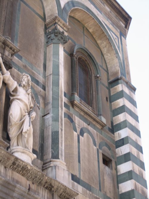 La decoración exterior estuvo financiada por el “Arte de Calimala”, el gremio más importante de la ciudad medieval, representado por importadores textiles.