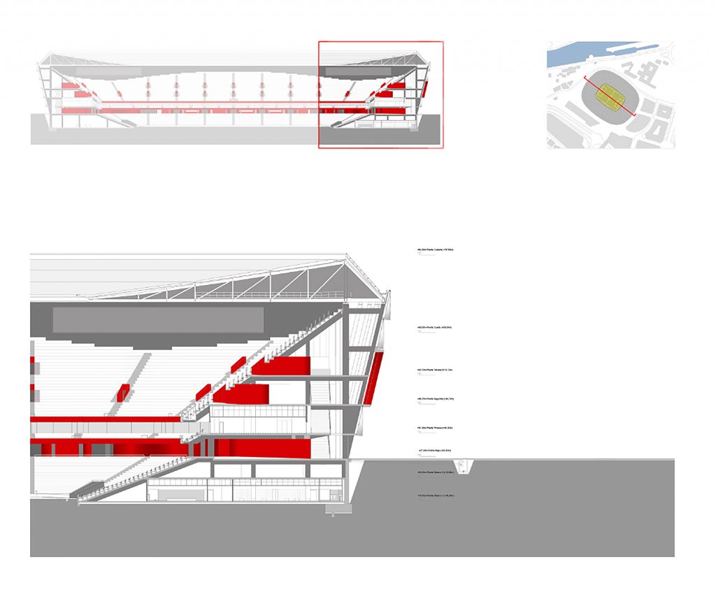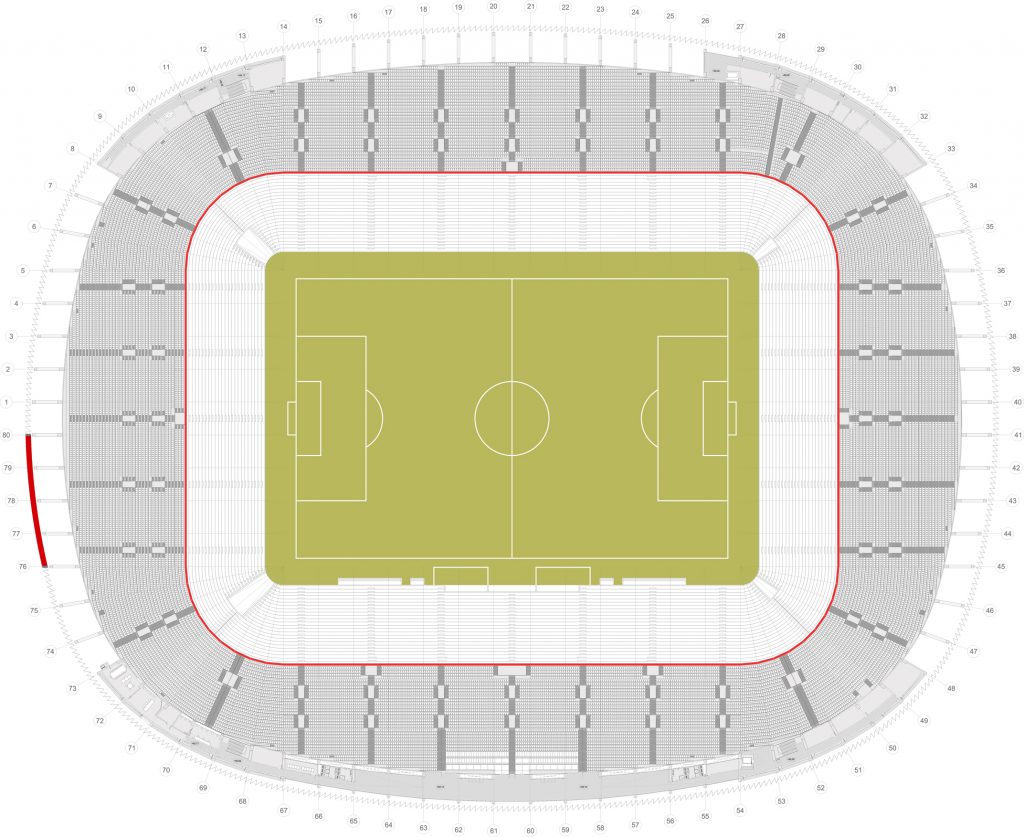 - Fase 3: 09/2013 – 08/2014, manteniendo el estadio en funcionamiento con 36.000 espectadores, se completa la construcción total hasta los 53.229 espectadores