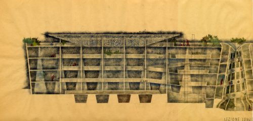 Soleri estudia la tipología constructiva y los patrones de distribución funcional en varios planos superpuestos o laderas escarpadas.