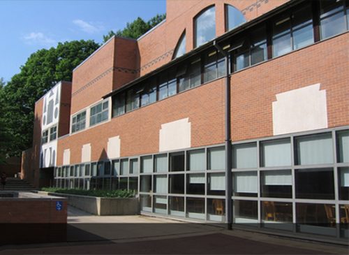 La identidad propia, pero a la vez compartida con las instalaciones ya existentes incluye en su construcción paredes de ladrillo ocre, molduras de piedra caliza y bahías de ventanas que se adhieren a la arquitectura gótica tradicional de Princeton. Se han realizado ornamentaciones con mármol blanco, negro y gris.