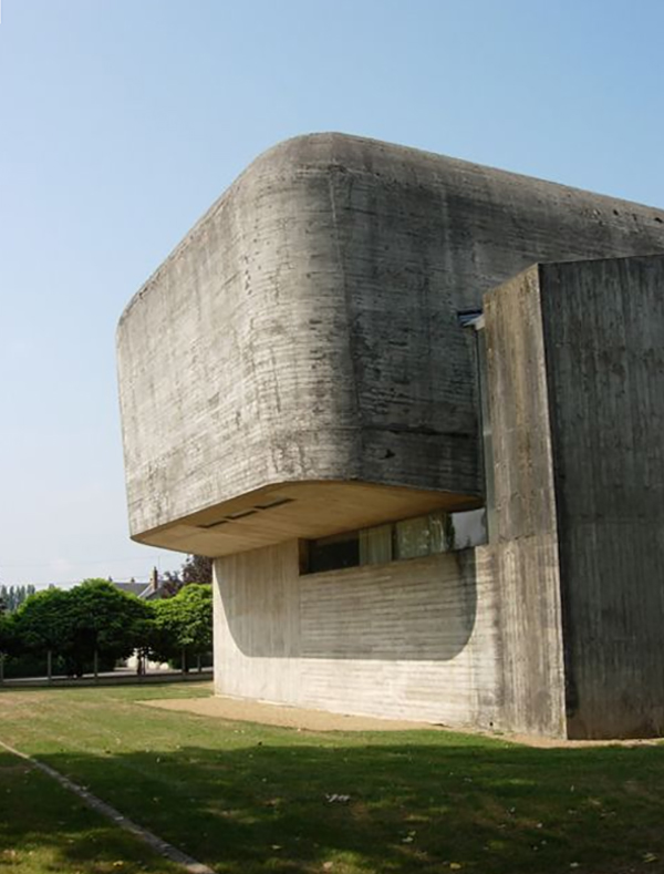 – Vocabulario de los bunkers del muro en el Atlántico Norte, ampliamente estudiado por Paul Virilio: masividad de la construcción, hormigón visto, aspecto monolítico y el uso de arcos rebajados.