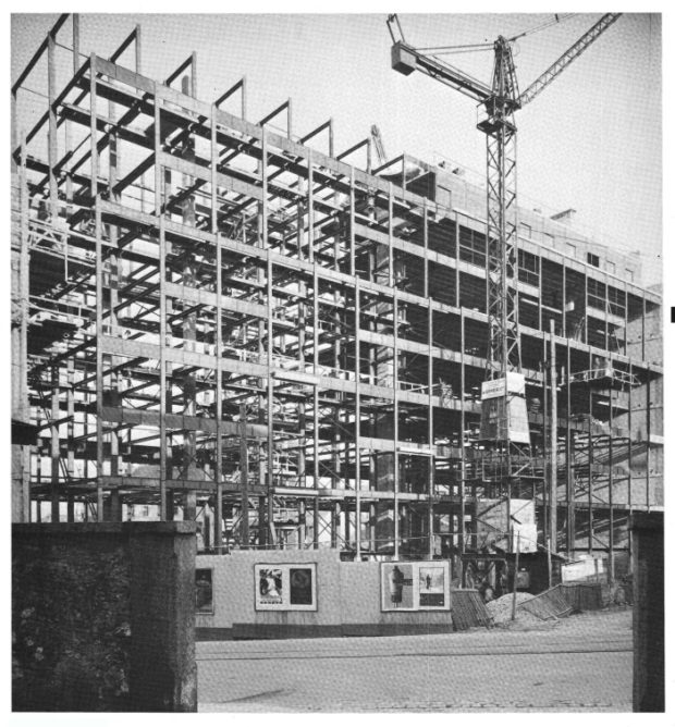 El 30 de mayo de 1931 se concede el permiso de construcción y se comienza el proyecto. Sobre el gran hall de entrada se levantan los bloques de apartamentos.