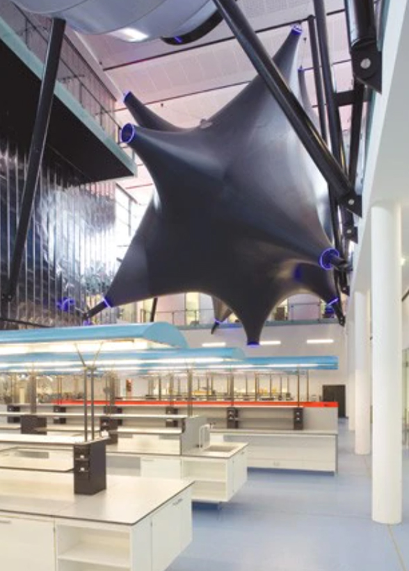 El edificio fue diseñado por el arquitecto líder Will Alsop y su estudio aLL Desing en asociación con la constructora Amec y brinda instalaciones de enseñanza e investigación a nivel mundial, incluidos laboratorios de planta abierta, oficinas y el teatro de conferencias Perrin con 400 asientos.