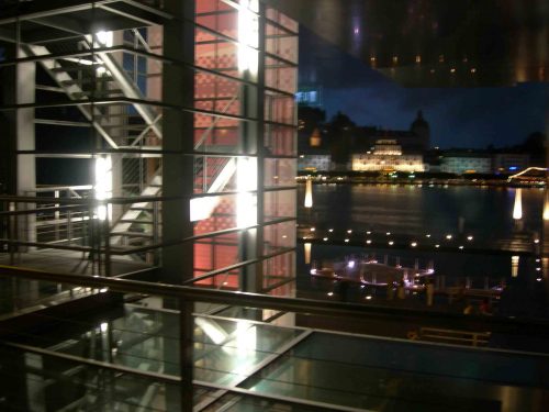 El edificio se ubica a orillas del lago, mirando hacia la ciudad del siglo XVII. Sin embargo, si se observa desde la orilla opuesta, la moderna obra se funde perfectamente con el horizonte, respetando la estructura tradicional de la ciudad, con las montañas como telón de fondo. El enorme saliente del tejado, las tres secciones en que se subdivide el edificio debajo y el paseo cerrado al tráfico sólo se pueden ver desde cerca.