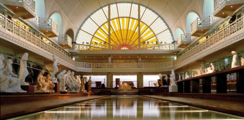 A lo largo de la piscina se expone una gran colección de esculturas entre las que se encuentran obras de Rodin y Camille Claudel, acompañadas por los antiguos mosaicos con detalles acuáticos que se han mantenido en su sitio.