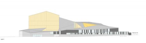 Las fachadas quedan minimizadas a medida que se dirigen a los edificios ya construidos y se usan para ventilar e iluminar aquellas partes del programa que así lo requieren, como la Escuela de Música o el restaurante. Cuando éstas forman el límite exterior se acaban en piedra negra. Cuando están formadas por algún corte entre los diversos pliegues de la cubierta, más introvertidas y de una altura mayor que las anteriores, a veces superpuestas a ellas en un plano retrasado varios metros, se acaban en chapa de latón brillante, color oro.