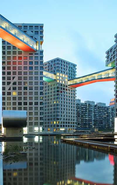 Desde el nivel 12 hasta el 18 una serie de puentes cubiertos y multifuncionales con piscina, un gimnasio, una cafetería, una galería, un auditorio y un mini salón conectan las ocho torres de viviendas y la correspondiente al hotel, ofreciendo vistas espectaculares sobre la ciudad.