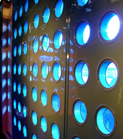Las paredes interiores, fueron hechas con paneles metálicos fijos y móviles sobre los que se abrían ojos de buey cerrados con cristales azules para proteger contra los rayos UV. Las galerías contaban con brise-soleil de hoja giratoria como protección y suelo de roble. La ventilación interior se conseguía mediante la circulación de aire.